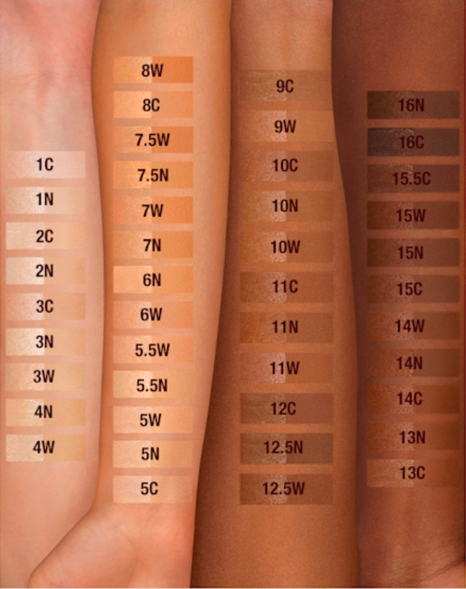 Die Foundation bietet 44 Nuancen – in Fair, Medium, Tan & Deep Kategorien, jeweils in cool, neutral und warm.