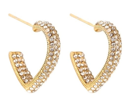 Heart Diamond Curve Edelstahl Creole Ohrring Gold und Silber 123956