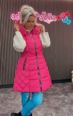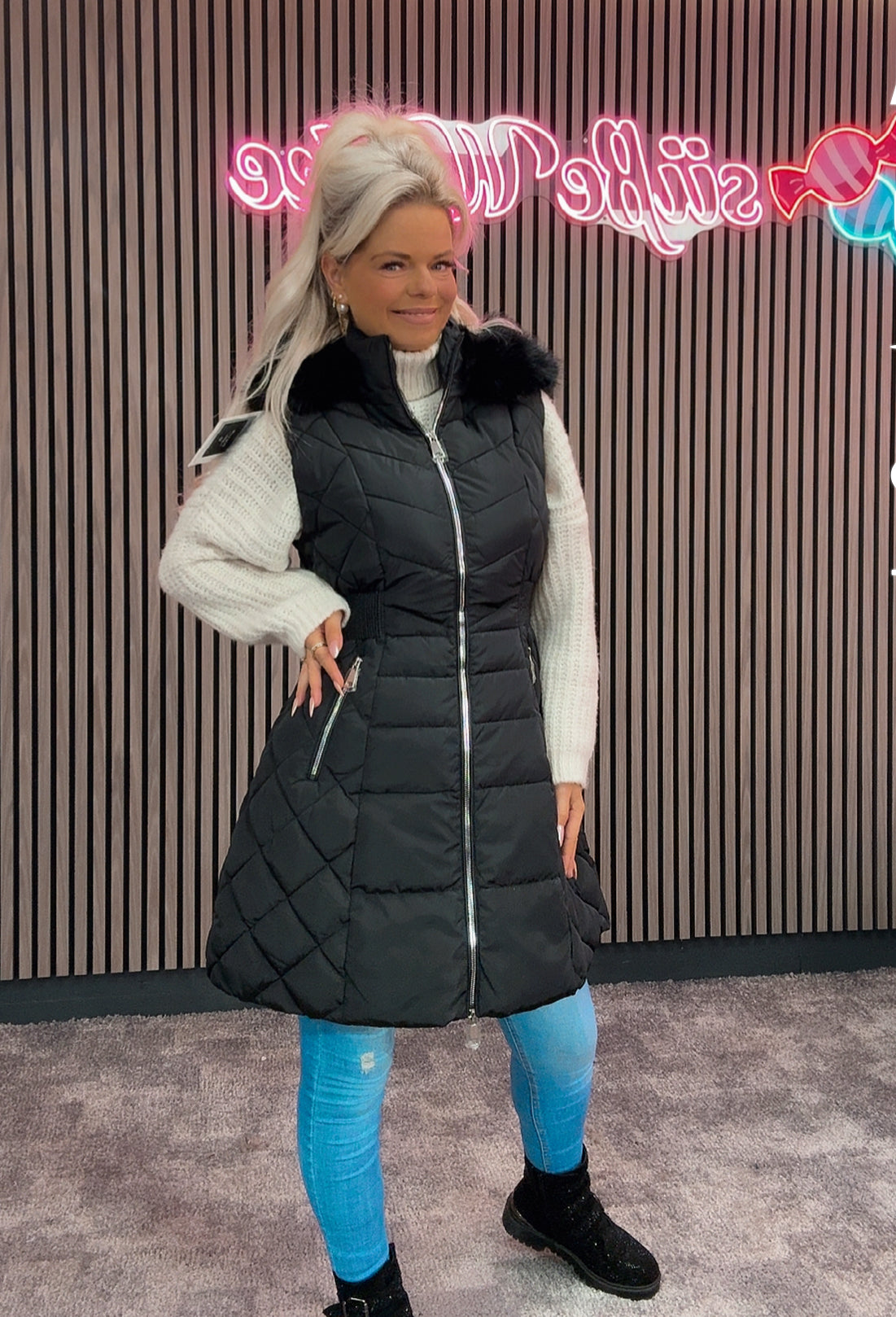 Diese elegante Steppweste vereint stilvolle Wärme mit femininer Silhouette. Die hochwertige Verarbeitung mit markanter Rautensteppung verleiht der Weste nicht nur eine edle Optik, sondern sorgt auch für angenehme Wärme an kühlen Frühlingsabenden. Die Kapuze ist mit auffälligem, flauschigem Kunstfell besetzt – ein echter Hingucker! In der Taille befindet sich ein elastischer Einsatz, der die Figur wunderbar betont und für einen taillierten Sitz sorgt. Die Reißverschlusstaschen mit glänzenden Zippern unterstreichen den sportlich-schicken Look und bieten gleichzeitig Platz für deine Essentials.