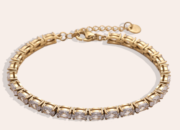 16cm Oval Diamond Chain Edelstahl Armband Gold und Silberfarbend 131540