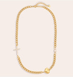 Hals Kette mit Herz & Kreuz Gold und silberfarbend 112263