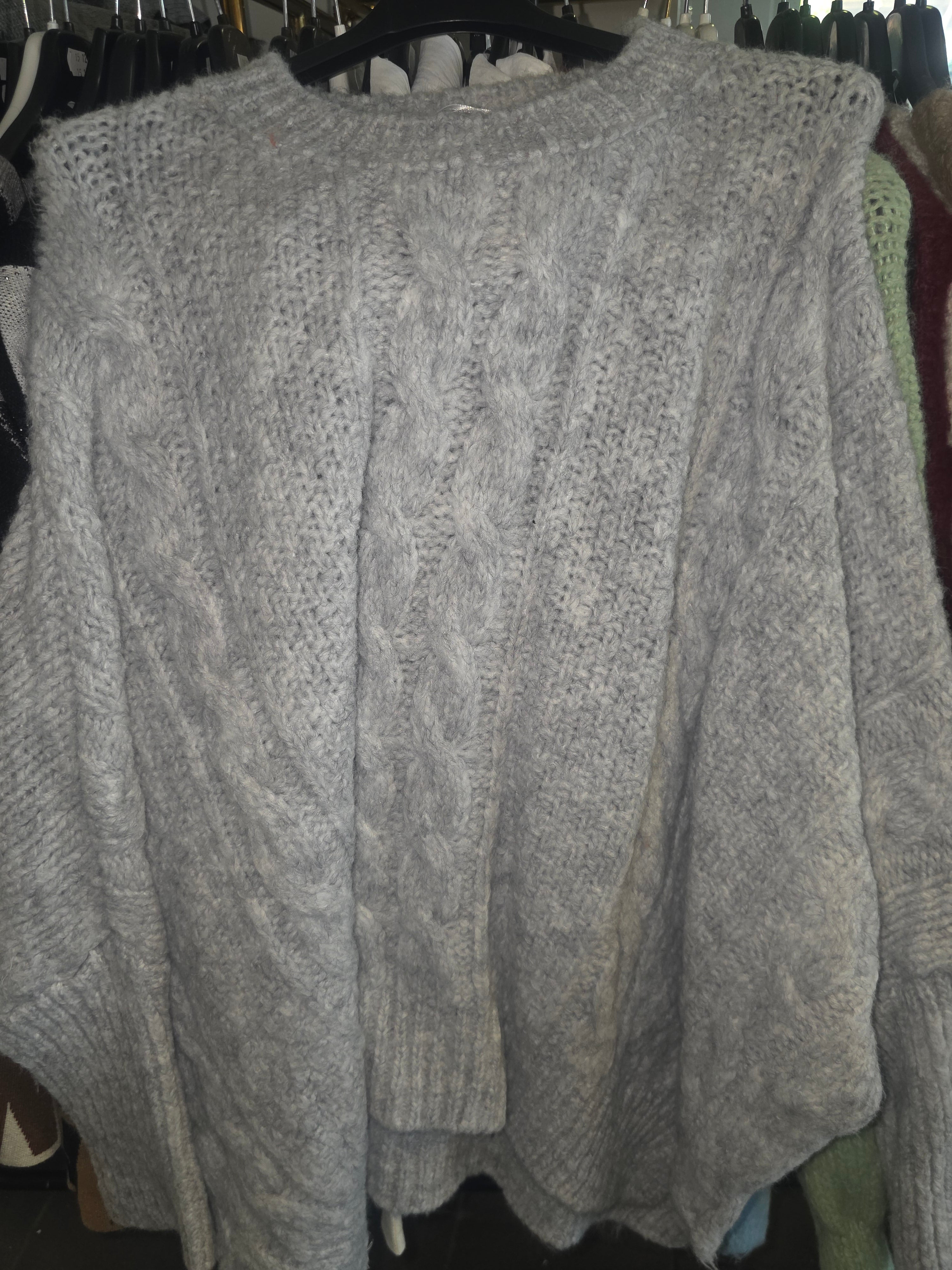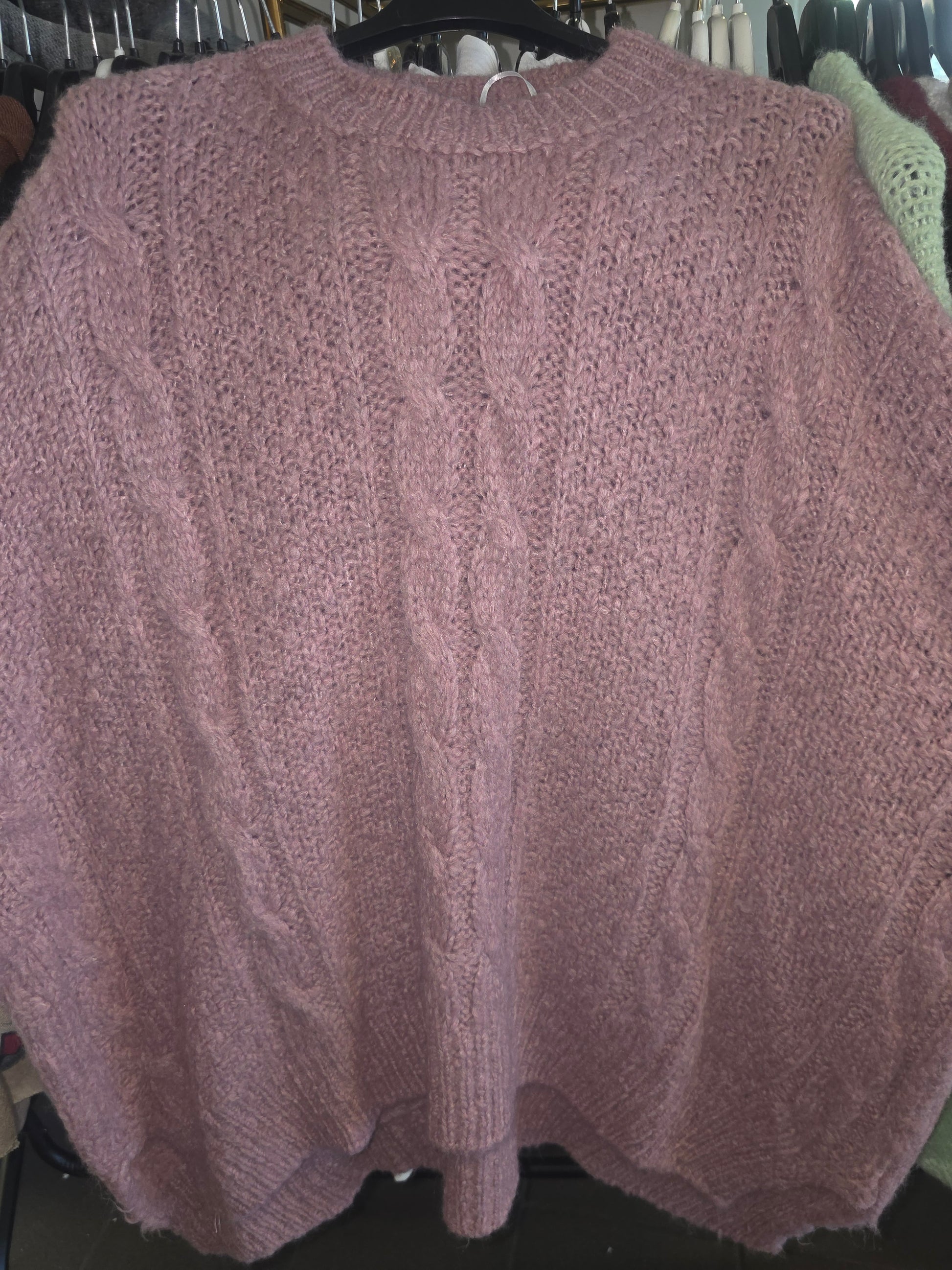Langer Strick Pullover Kurzarm Fledermaus verschiedene Farben 309191