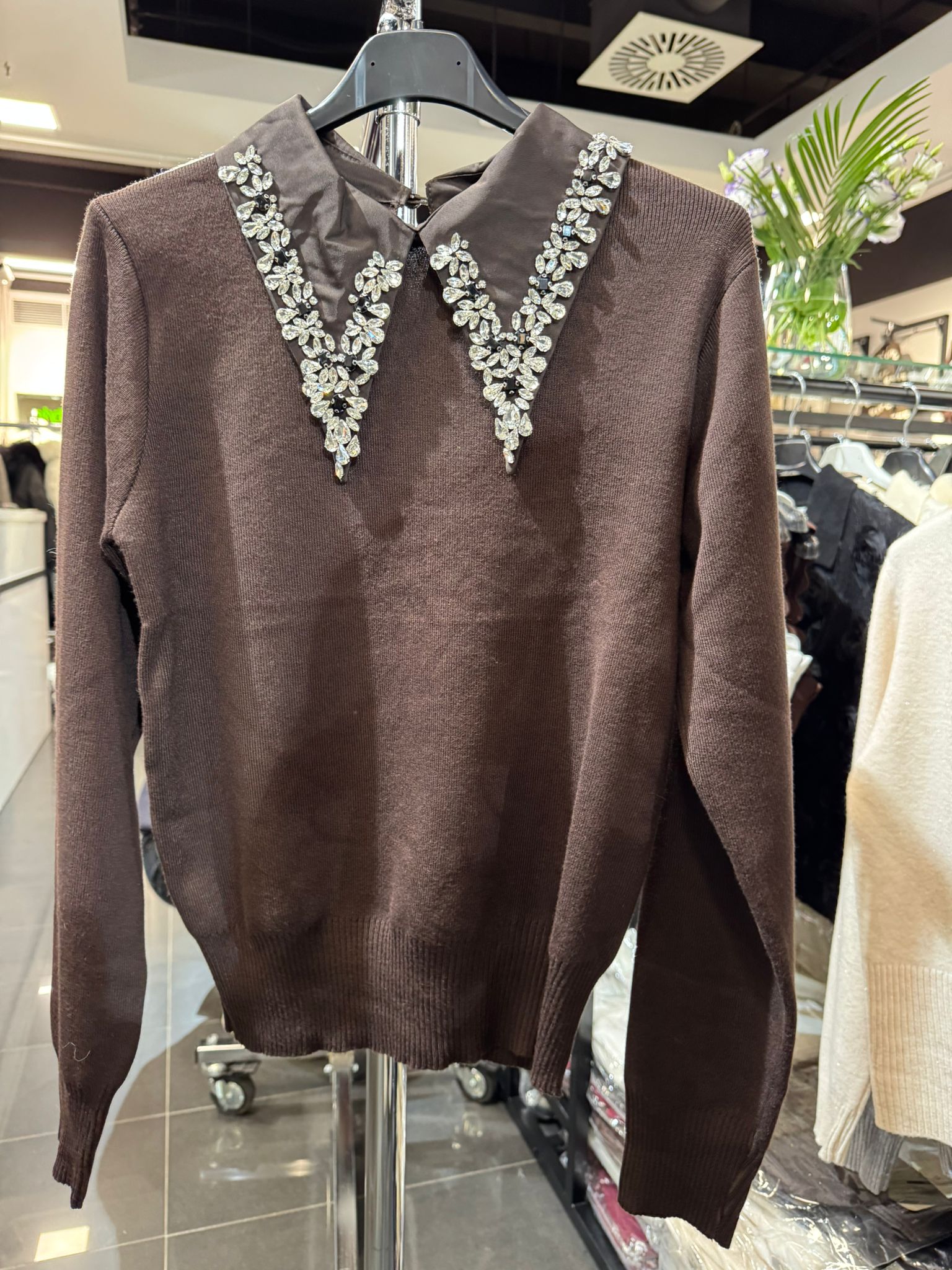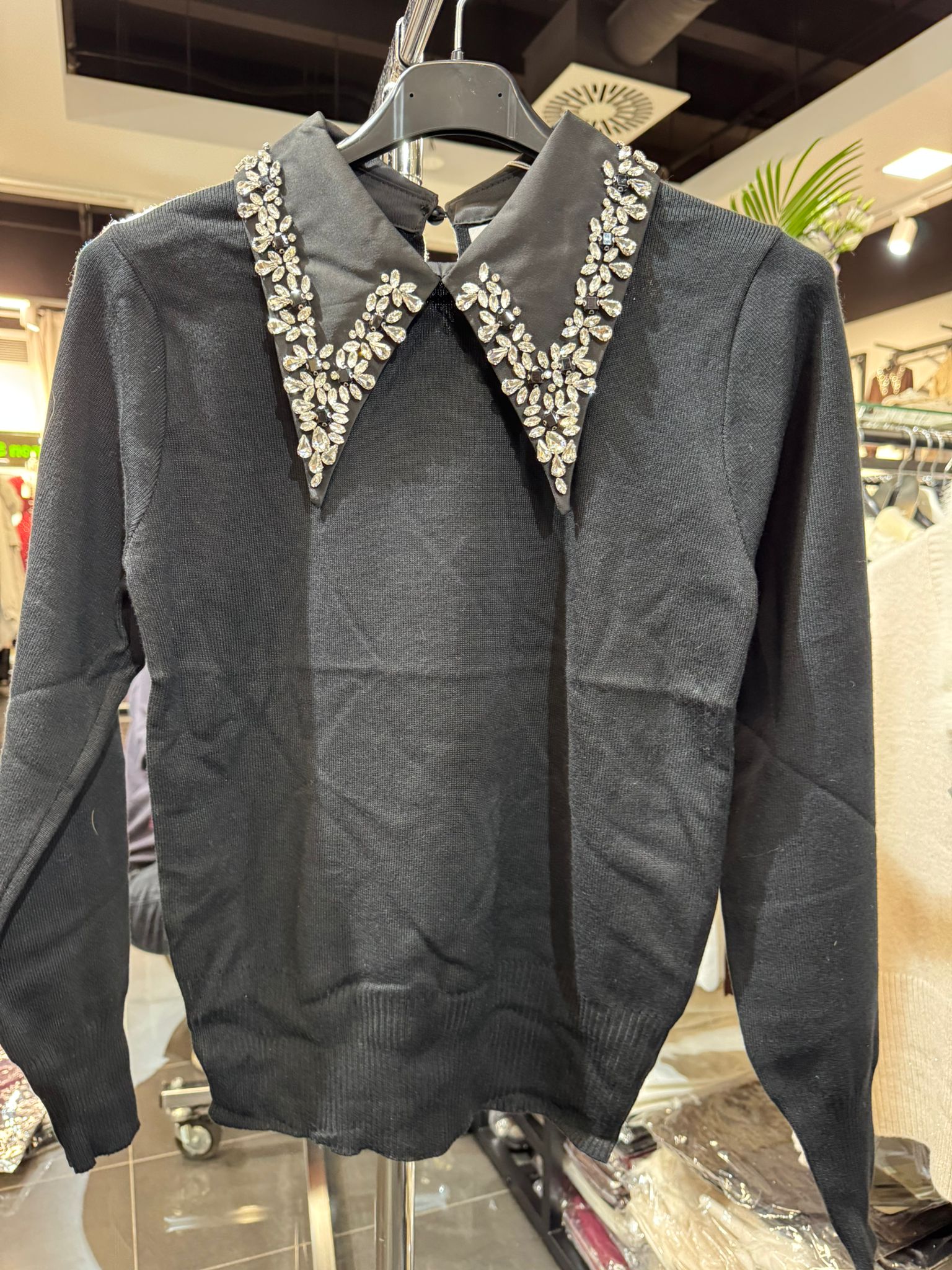 Beschreibung >>> Pulli mit grossem Glitzerkragen 05612 verschiedene Farben