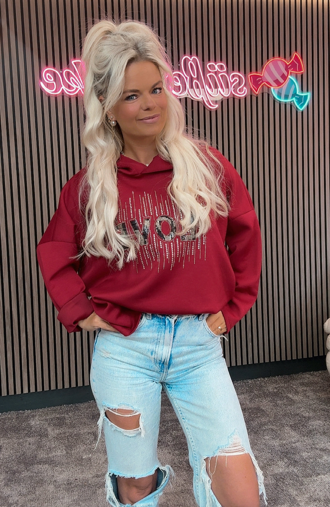Beschreibung >>> Pullover mit Kaputze LOVE Glitzer verschiedene Farben 1503