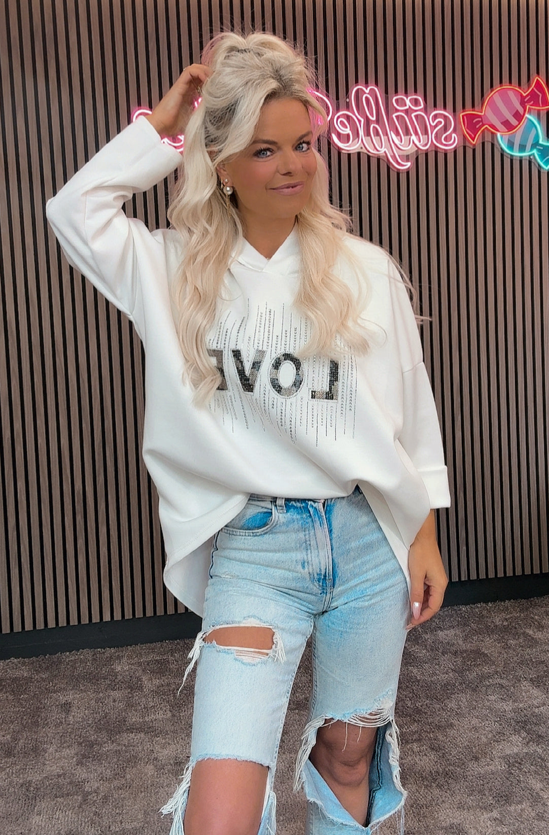 Pullover mit Kaputze LOVE Glitzer verschiedene Farben 1503